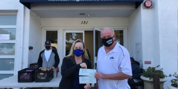 Exalted Ruler Mike Bennison, presented checks for the Beacon Grant and Spotlight Grant to the Toberman Neighborhood Center Executive Director Darlene Kiyan. Providing services to the community to benefit children. After school tutoring, mentoring, school supplies and food pantry. Providing COVID relief, to homeless and low income families.
